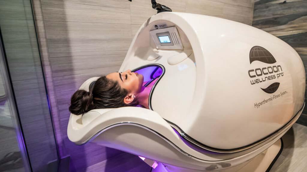 Proses pemanasan tubuh dilakukan dengan tambahan adanya pijatan berupa getaran pada alat sehingga memaksimalkan hasil pembuangan kalori, dilengkapi juga dengan garam Himalaya sebagai bantal sehingga setelah dihirup akan membersihkan pernafasan dan mengurangi stres karena aroma akan menghasilkan ion negatif yang meningkatkan sistem kekebalan tubuh. Kapsul yang berbentuk kepompong dengan panjang 2.03 m pada Cocoon Wellness Pro, dilengkapi dengan tampilan layar sentuh LCD empat warna, kipas pendingin yang berguna untuk membantu mencegah panas berlebih pada area wajah, tempat tidur dengan desain ergonomis sehingga memberikan kenyamanan optimal selama sesi berlangsung.
